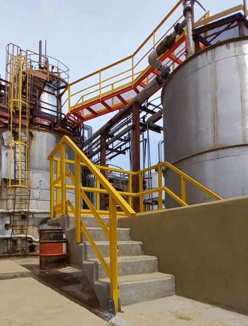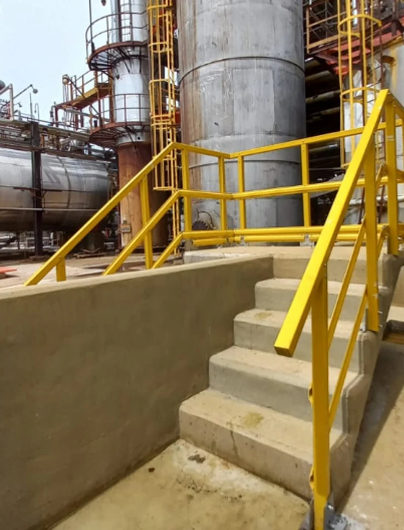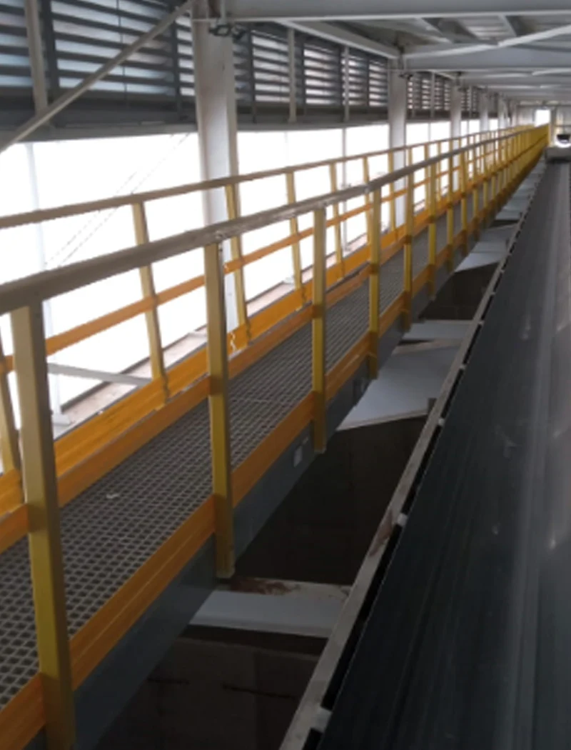 Las barandas Steklo son construidas con perfiles estructurales de plástico reforzado fabricados en nuestra propia planta por el proceso de pultrusión.